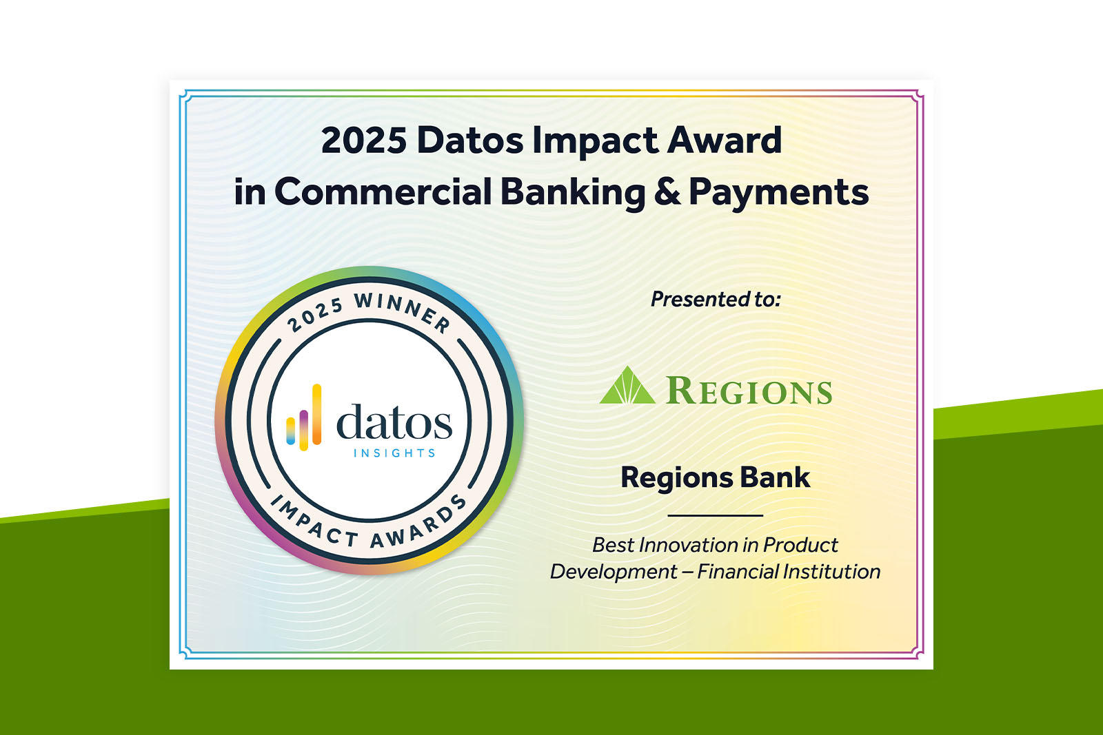 Datos Insights, a research and advisory firm working with the banking, insurance and securities industries, has recognized Regions as a gold winner of the 2025 Datos Impact Award for best innovation in product development.